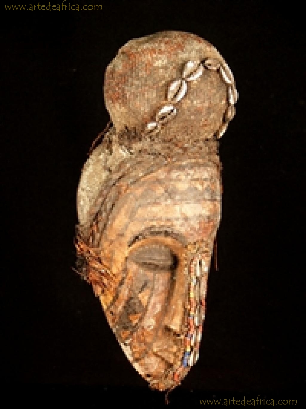 La máscara Mwaash a-Mbooy o Moshambwooy, representa a Ngaady a mwaash, hermana y esposa de Woot, ancestro de los Bushongo de quienes proceden la gran familia Kuba. Se les llamó Bushongo hasta que los Luba les dieron el nombre de Kuba. Es una máscara femenina sin ojos. Es la máscara más representativa del pueblo kuba. Presenta una bella policromía y una rica ornamentación: cuero, cauris, perlas de cerámica. Su color rojo representa la sangre y la riqueza, el blanco el luto y la pureza religiosa y el azul es el símbolo de un nivel social elevado. Esta figura presenta un elevado moño adornado con dos filas, convergentes, de cauris. Su nariz está igualmente adornada con una larga fila de cauris.