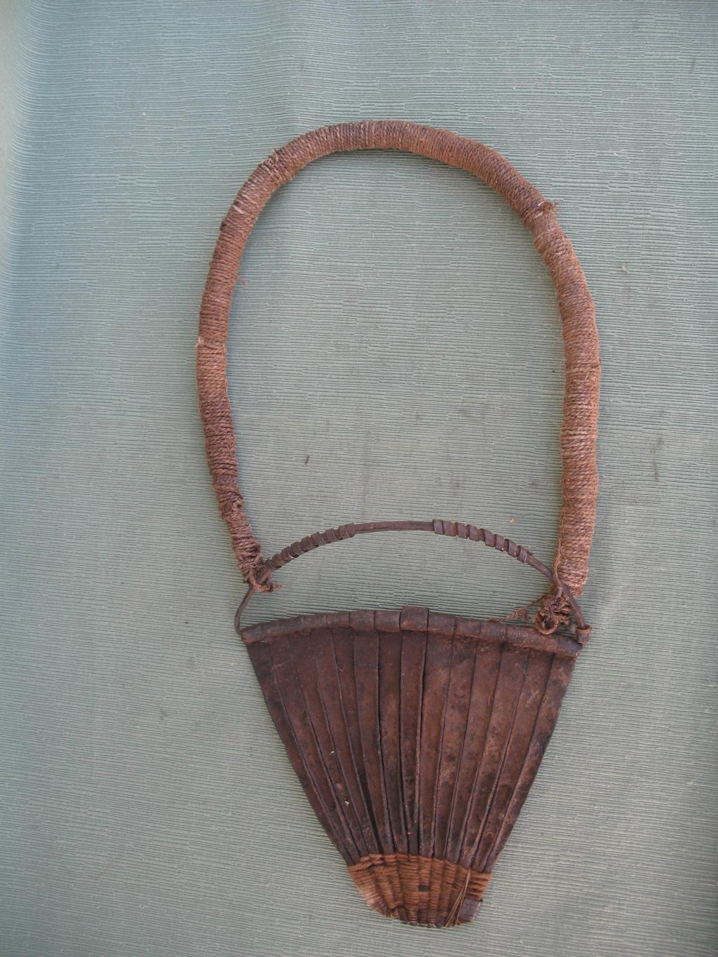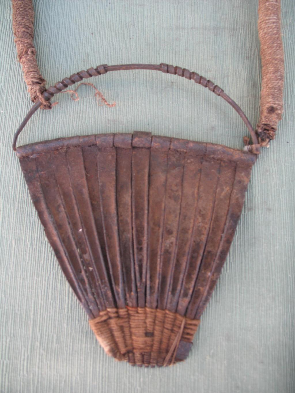 Moneda que servía al mismo tiempo de cubresexo de las jóvenes fali. Está formada por varias láminas de hierro. Pátina antigua.