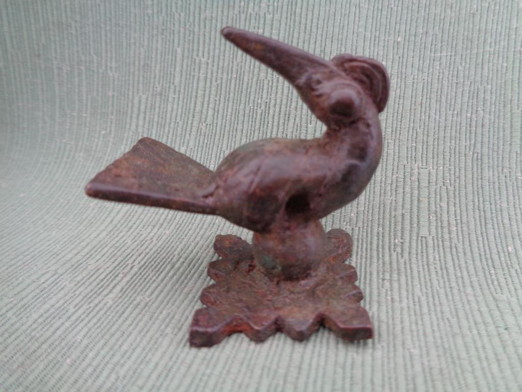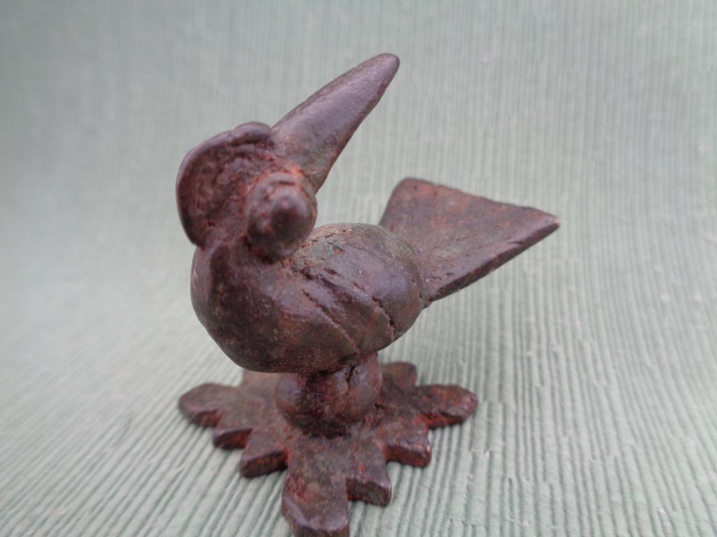 Pesa muy antigua, posiblemente del siglo XIX o anterior. El pájaro es también fuente de refranes, por ejemplo "Sólo los pájaros de la misma especie pueden jugar en el mismo arbol" o "El pájaro que ha caído en una trampa evita cantar". Pátina muy antigua.