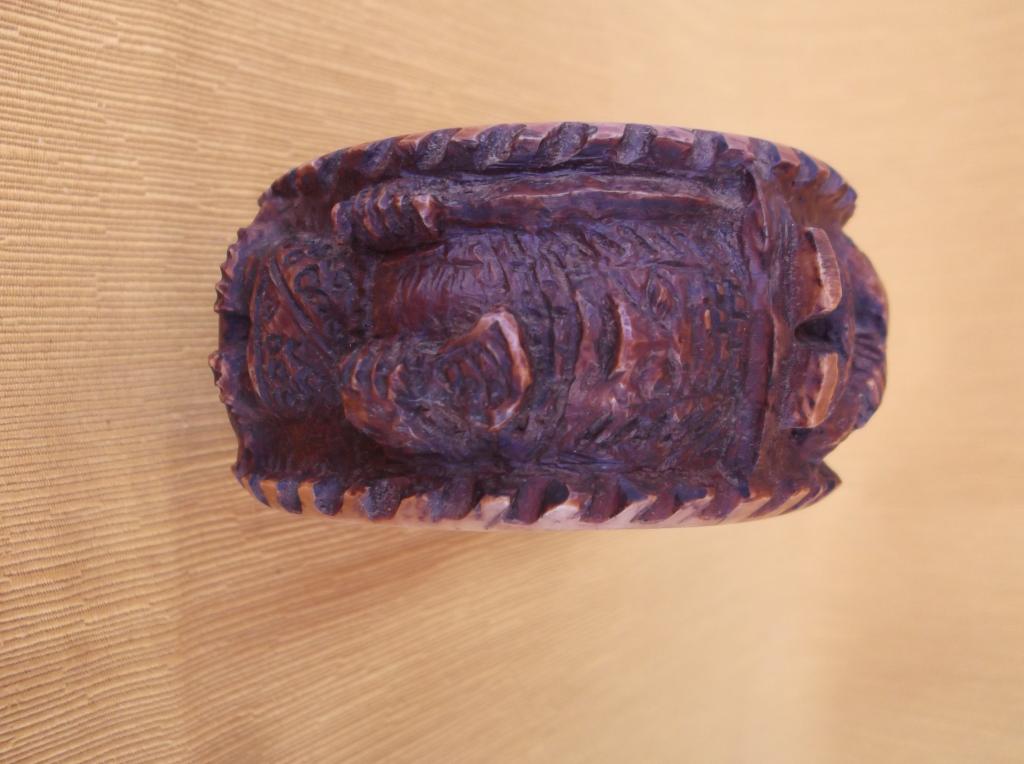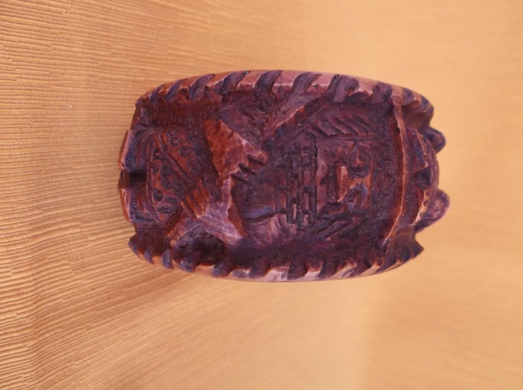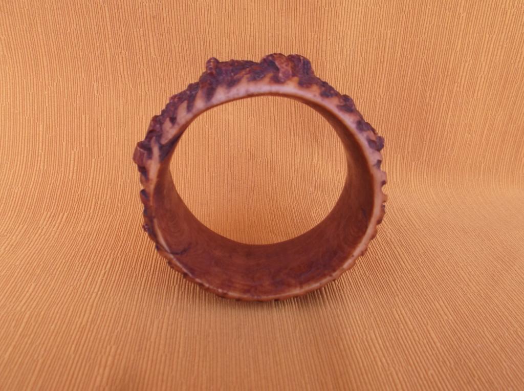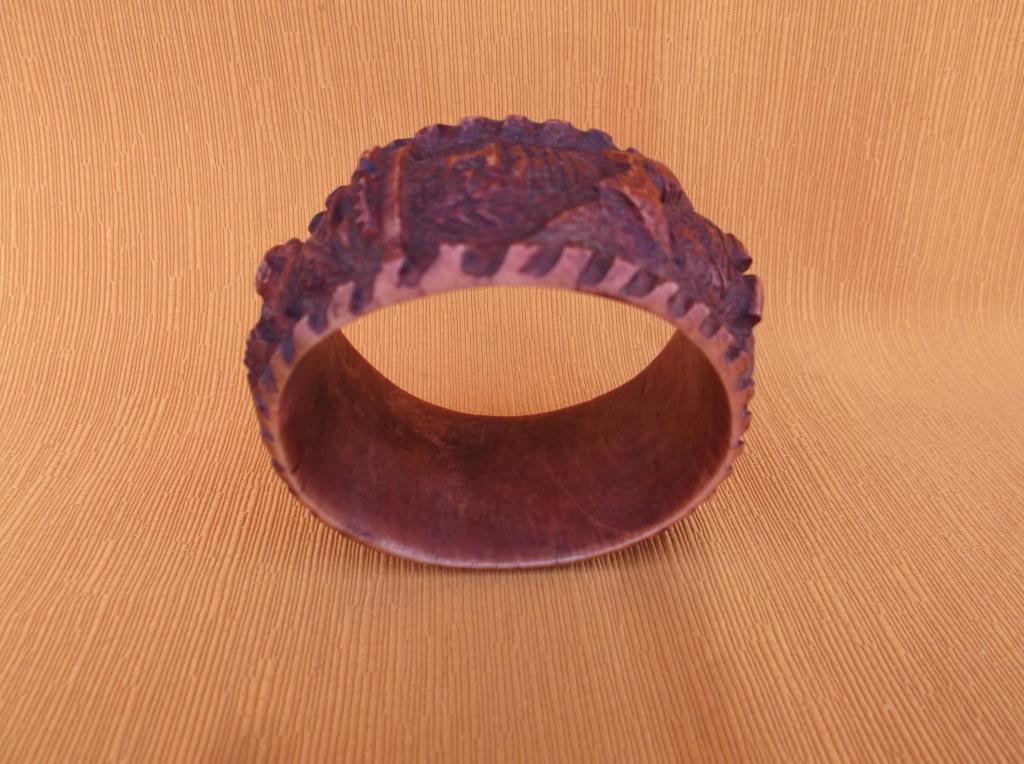 Pulsera del Reino de Benin en la que figuran cuatro personajes masculinos notables con el traje típico de su época de esplendor. Dos de ellos portan un arco o lanza agarrado con ambas manos y los otros dos una larga espada en la mano derecha y una especie de cetro en la izquierda. Es el atuendo de los personajes importantes de la Corte. Forma parte de una pareja de brazaletes, ésta que representa a un hombre y otra que representa a una mujer, destinadas a ser portadas por una mujer notable o de la Corte. Perteneció a la esposa de un ingeniero que trabajó en el puerto de Cotonú, importante ciudad del actual Benin, anteriormente Dahomey, a mediados del siglo XX. Pátina marrón que indica su antigüedad.