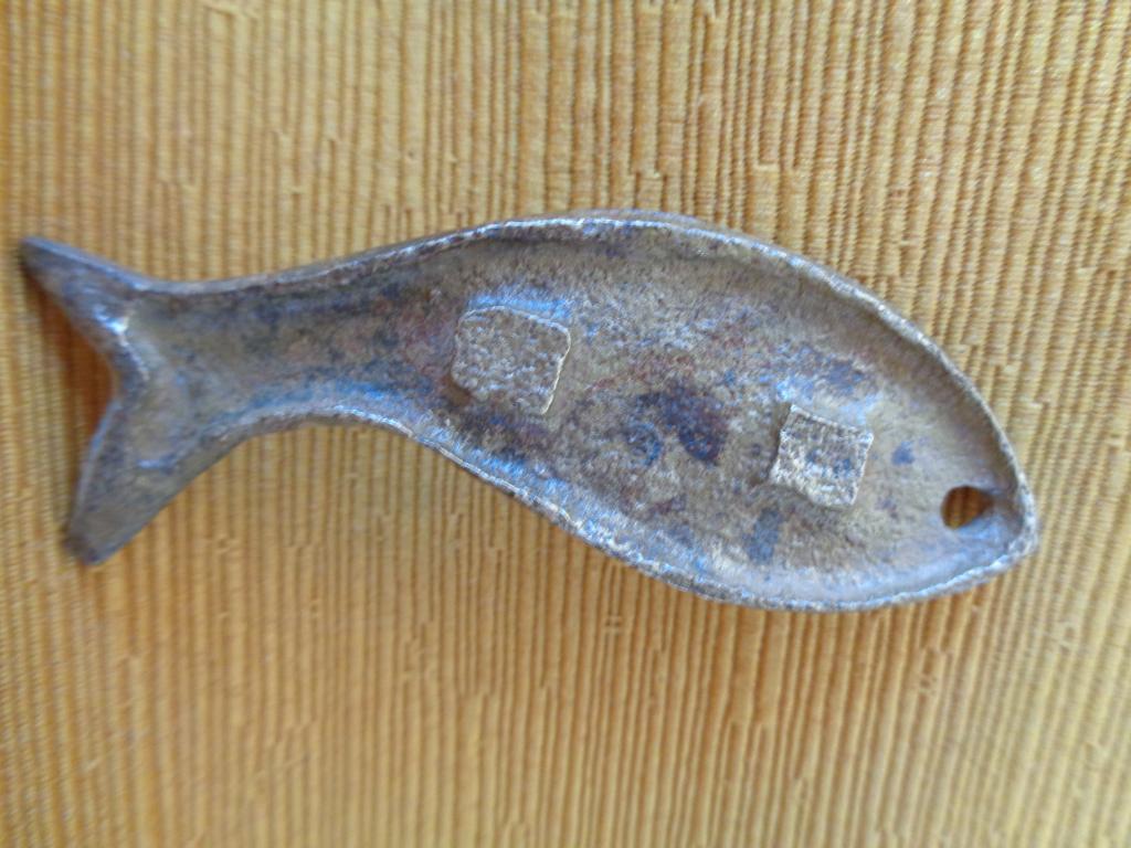 Colgante de adorno para las mujeres Lobi con forma de pez. Pátina del tiempo.