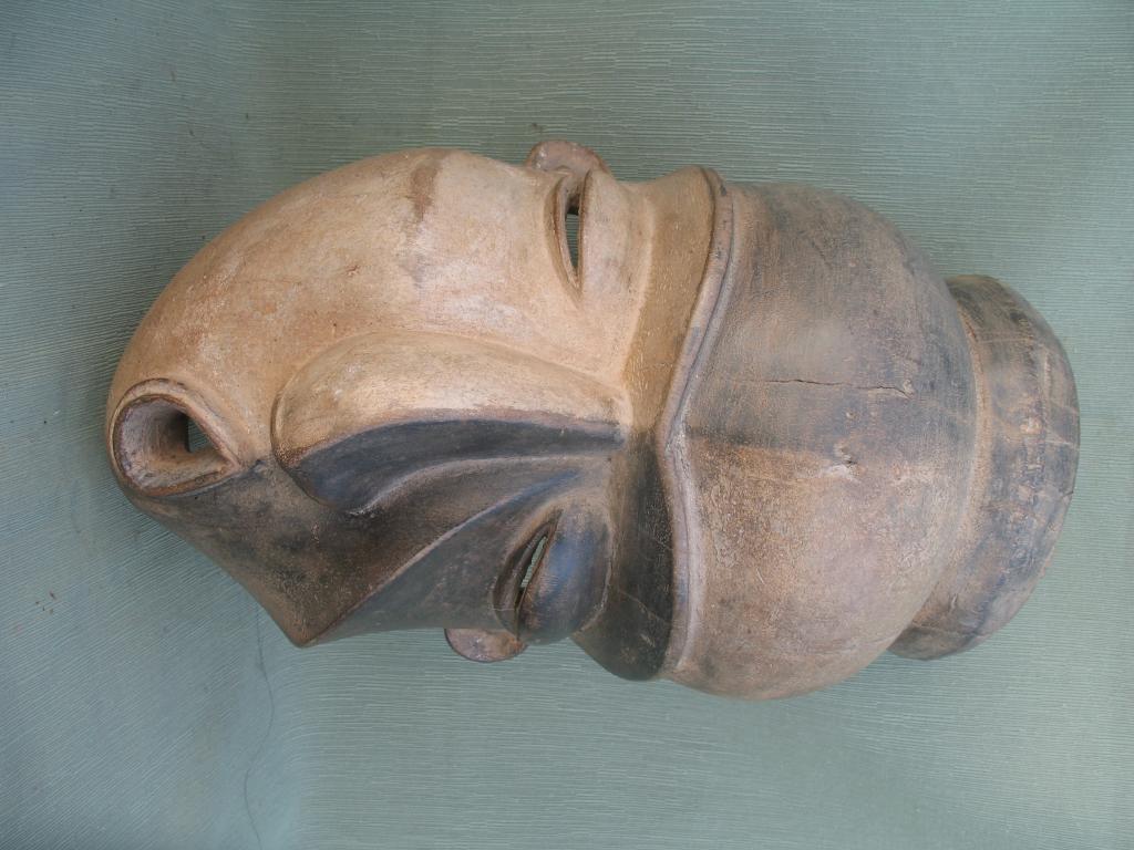 Son varios los pueblos que en sus máscaras presentan la estética de lo diforme, de la fealdad, como esta máscara que representa un rostro desfigurado por una parálisis facial. La función de estas máscaras es precisamente la de alejar la enfermedad y las epidemias o de impedir las distintas formas de parálisis. Esta máscara proviene del oeste del Camerún.