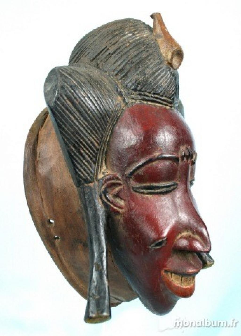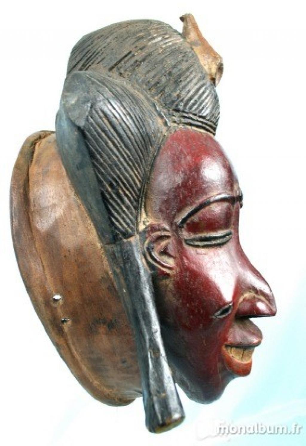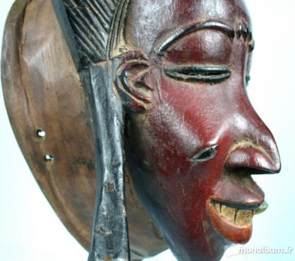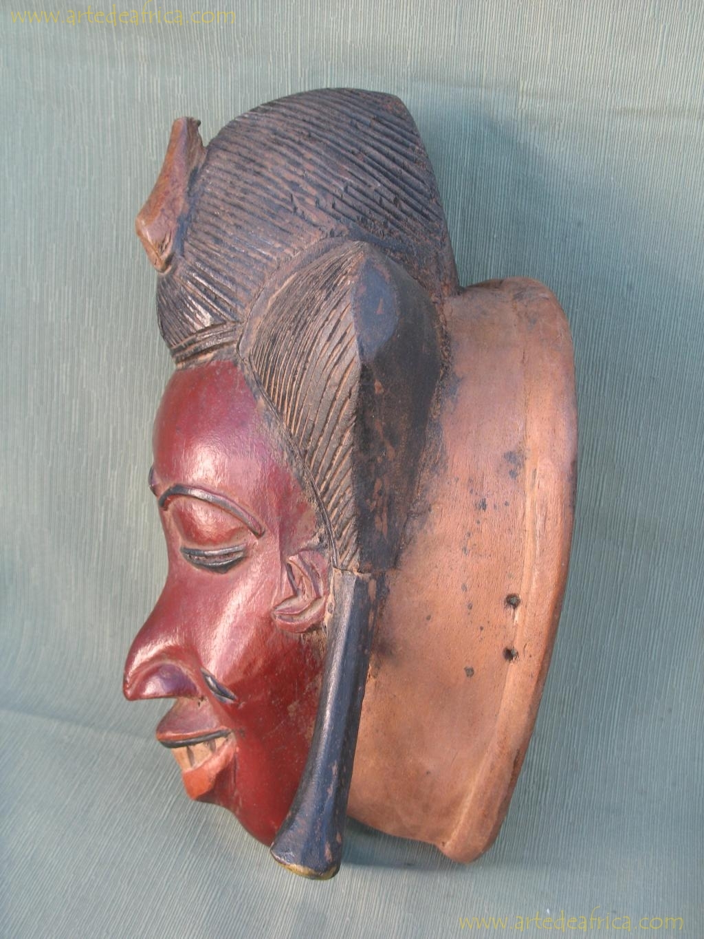 Esta máscara, de rostro marcadamente femenino, parece manifestar alegría.