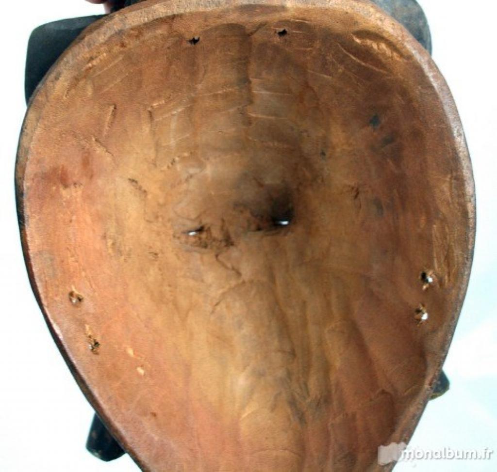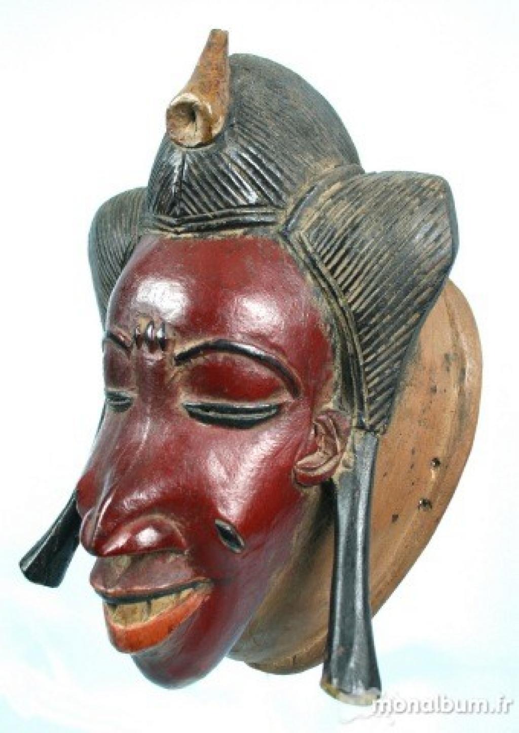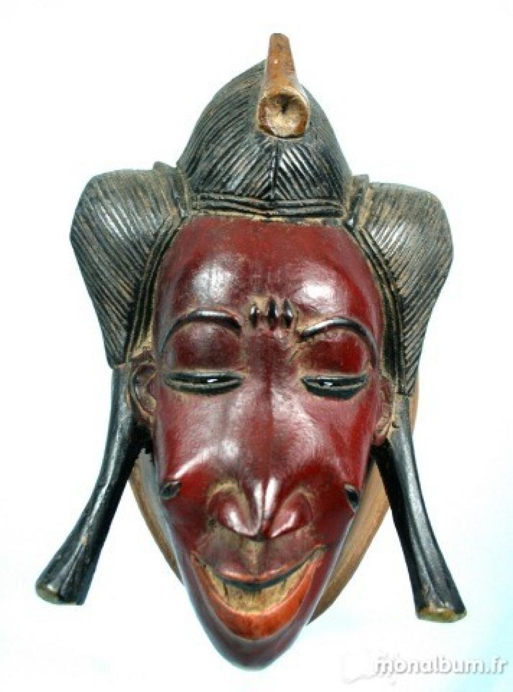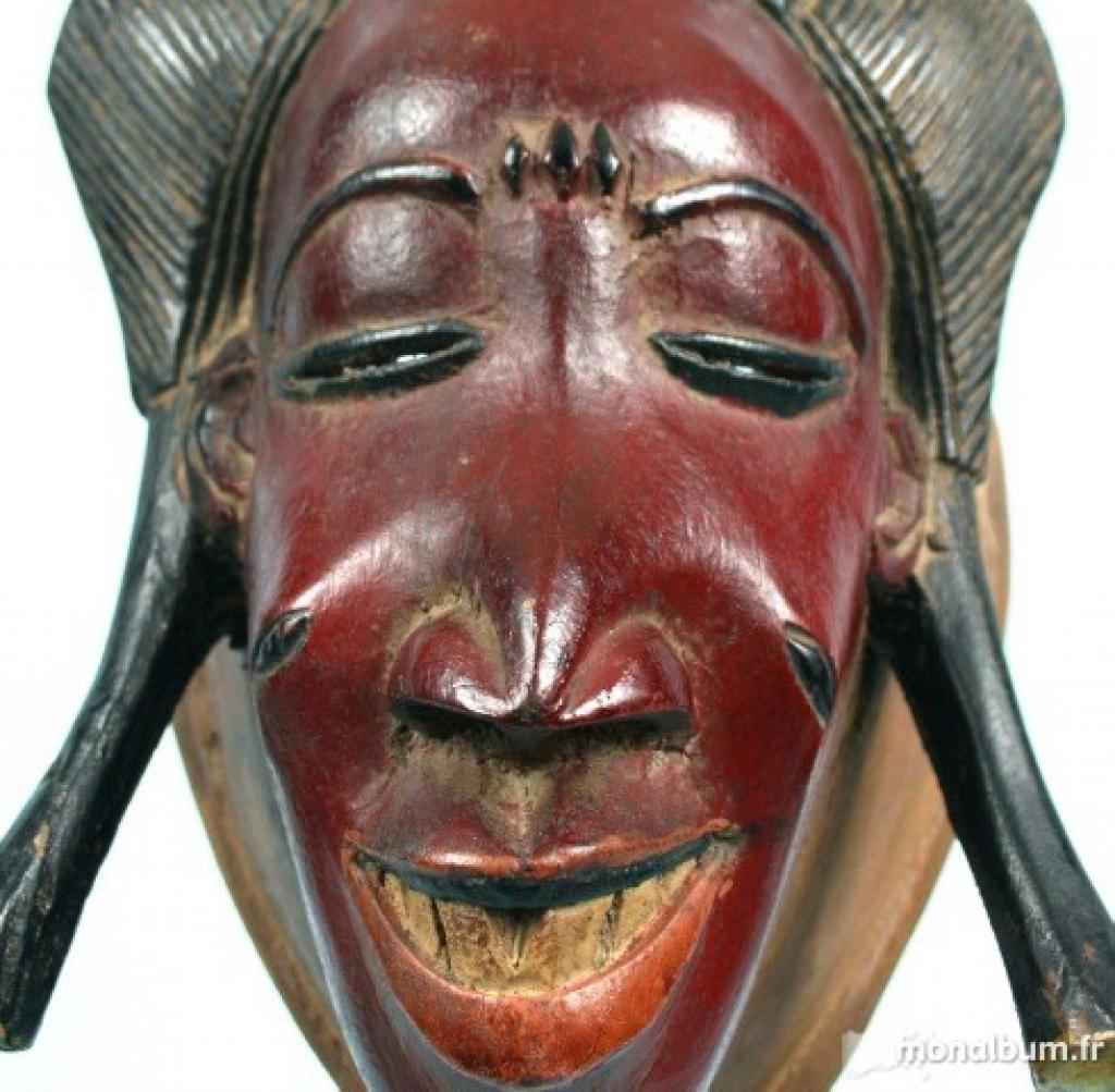 Esta máscara, de rostro marcadamente femenino, parece manifestar alegría.
