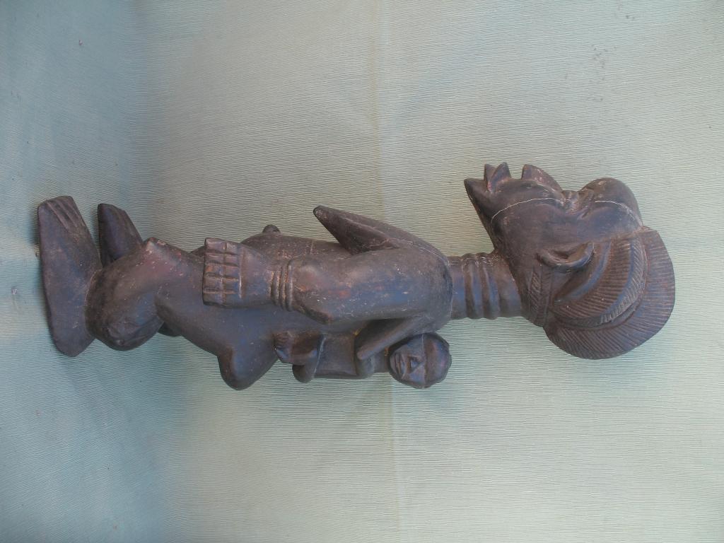 La figura de la maternidad es una de las más antiguas y representativas de África, aunque su representación por los Dan es bastante tardía, de mediados del siglo XX. Se la representa normalmente con su hijo a la espalda, el niño va adosado a la espalda de la madre pero sin el paño tradicional que lo sujete, y ocupa un lugar muy secundario en cuanto a su calidad estética, ya que en todas las maternidades africanas se trata de realzar la figura de la madre. No suelen representar a una mujer concreta, sino a la mujer dispensadora de la vida y del alimento, pues su función principal es dar la vida y preservarla.
