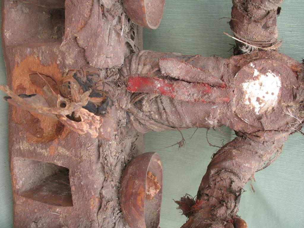 Materiales / Técnica : Madera, hierro, cauris, rapo, fibras, espejo y sustancias sacrificiales.