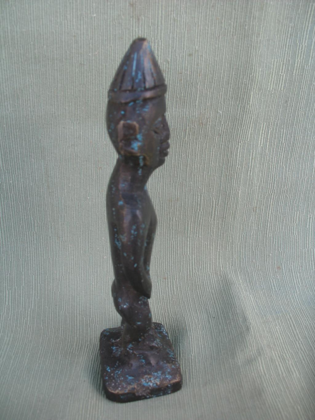 Esta figurilla representa perfectamente los criterios estéticos de la etnia mossi. Pátina muy antigua.
