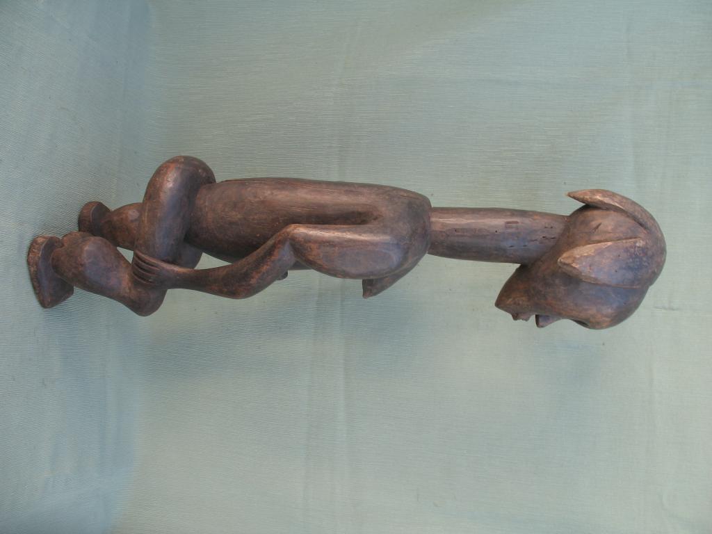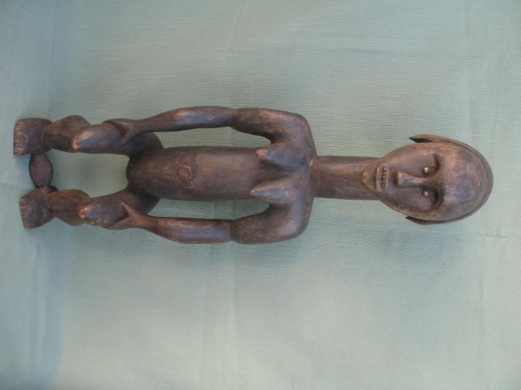El aspecto de los guardianes de relicario mabea se salen de la estética ordinaria tanto por el peinado como por su rostro con la boca mostrando los dientes y los ojos abiertos. Pátina marrón oscuro.