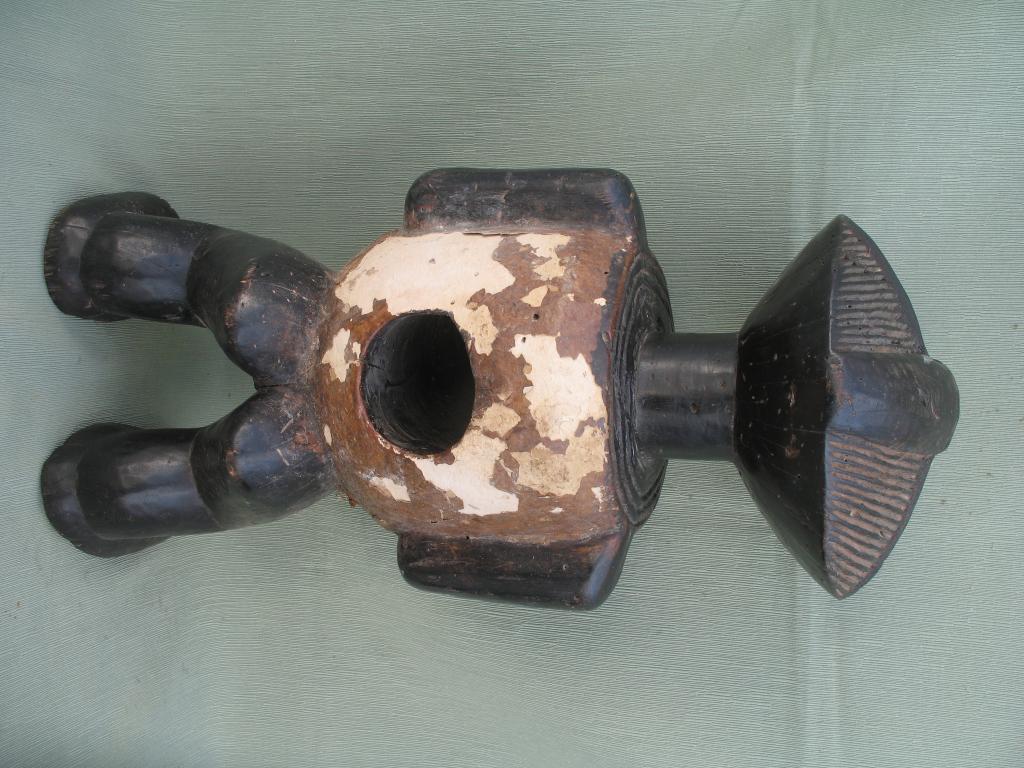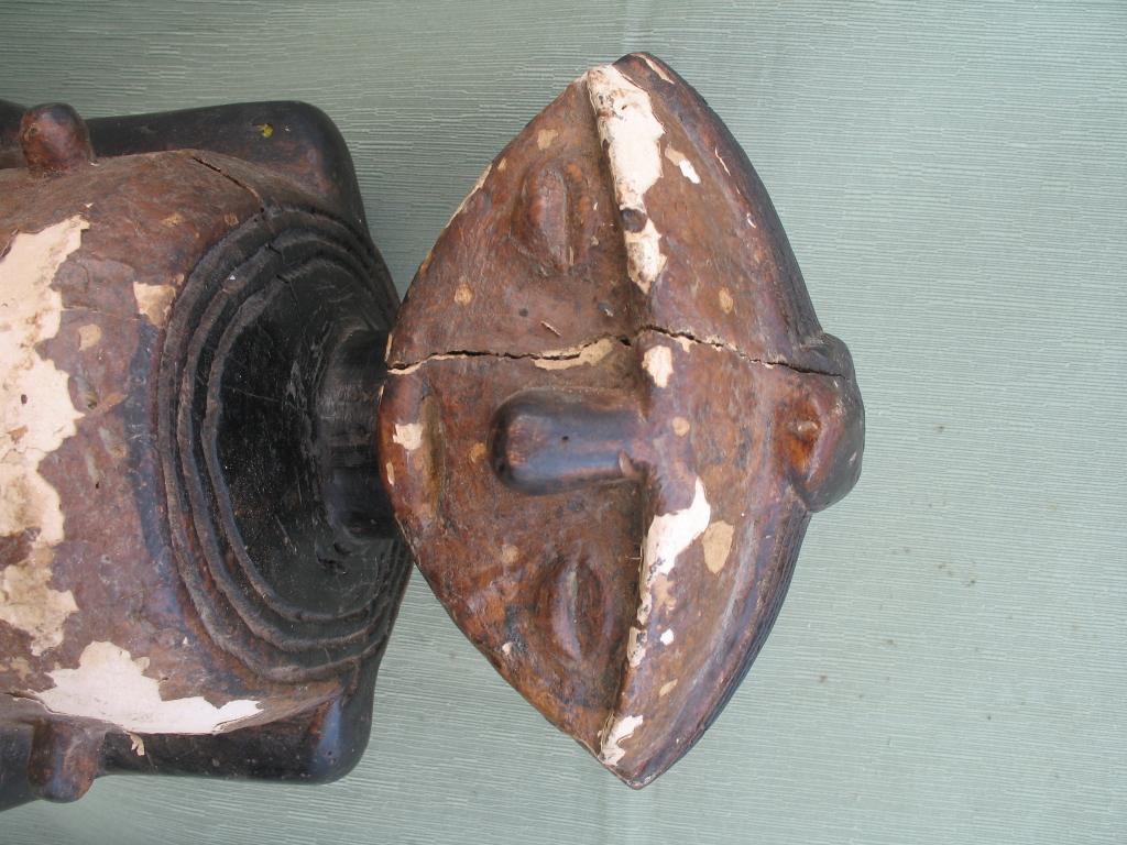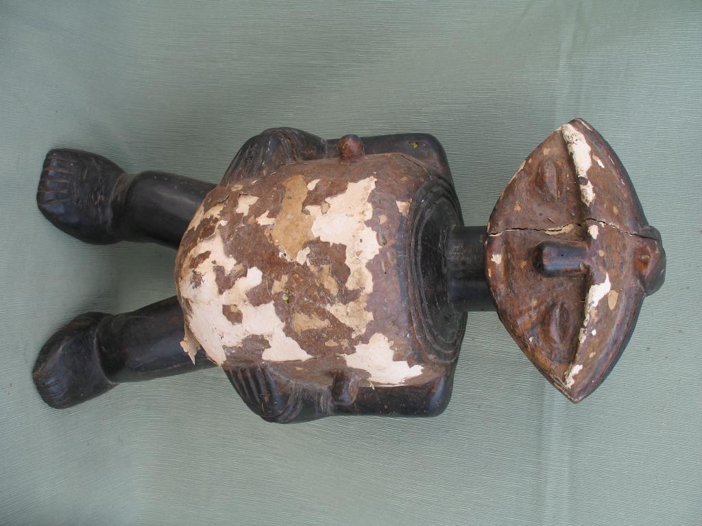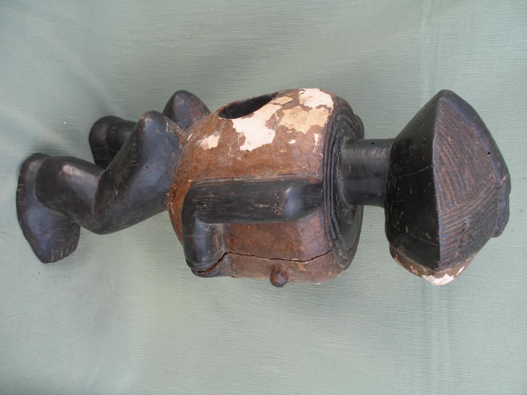 Los Ambete están situados a lo largo de la frontera entrela República Popularde Congo y Gabón. La estatua relicario, figura andrógina, tiene los brazos pegados, a lo largo de un cuerpo cilíndrico, y antebrazos con las manos que avanzan hacia el exterior. La frente ocupa la mitad superior de la cabeza. Rostro en forma de elipse cortada en dos por una frente sobresaliente, y un peinado que forma una especie de cresta central aplastada de la que las melenas laterales a cuatro vientos. Boca cerrada, sin labios, Sus ojos están cerrados. La cabeza tiene la misma anchura que el cuerpo, torso alargado y piernas cortas ligéramente flexionadas, Estos relicarios se caracterizan por la gran cavidad dorsal destinada a recibir las reliquias de los antepasados, especialmente parte del cráneo y otros huesos. Las piernas separadas. El torso, en el que destacan dos gruesos pezones, y el rostro son de color marrón, que destacan sobre el negro. Están imágenes están recubiertas de caolín, ya que el blanco es el color del luto. Sobre el caolín lleva una pintura marrón que se está despegando. Pátina del tiempo.
