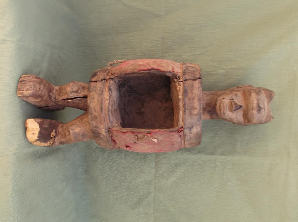 Rarísimo relicario Dan a lo Jano destinado a guardar los restos de un antepasado. Ha perdido la puerta de cierre por el paso del tiempo. Perteneció al padre del anticuario senegalés Mamadou Marema Diop de la tercera generación de anticuarios. Pátina del tiempo.