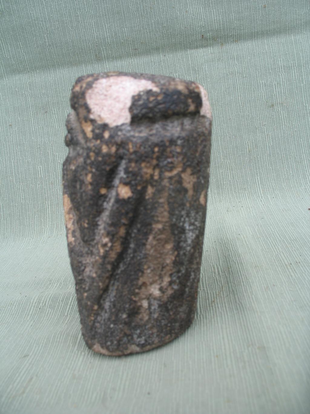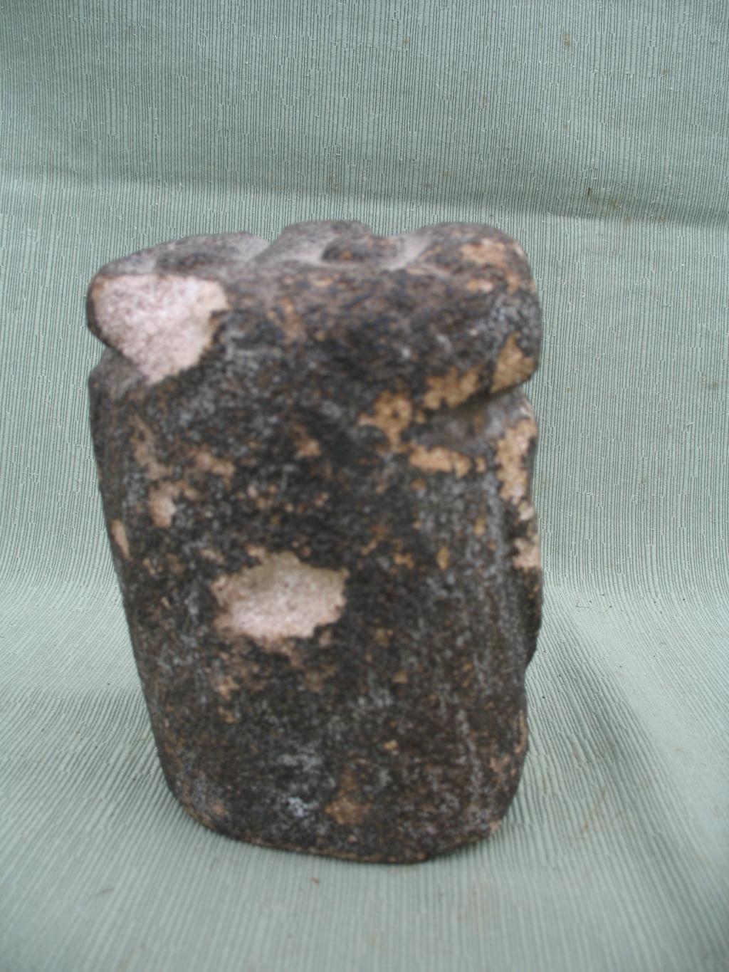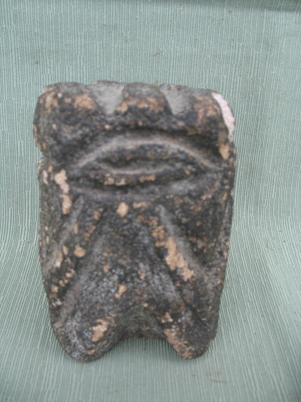 Pequeña y raraq piedra que representa a un personaje con las manos juntas en el pecho, debajo de la gran cabeza, en actitud imploratoria. Pertenece sin duda a la sociedad iniciática Vabong. Estas piedras, al igual que la piedra negra junto a la cual esconden las máscaras bovinas, marcan el lugar del sacrificio. Y como nos dice Maesen junto a ellas ce celebran los sacrificios durante los ritos propiciatorios destinados a la caza o a la recolección. Sirven también de sede para administrar la justicia y tienen virtudes apotropaicas, estas piedras están cargadas del poder de curar.