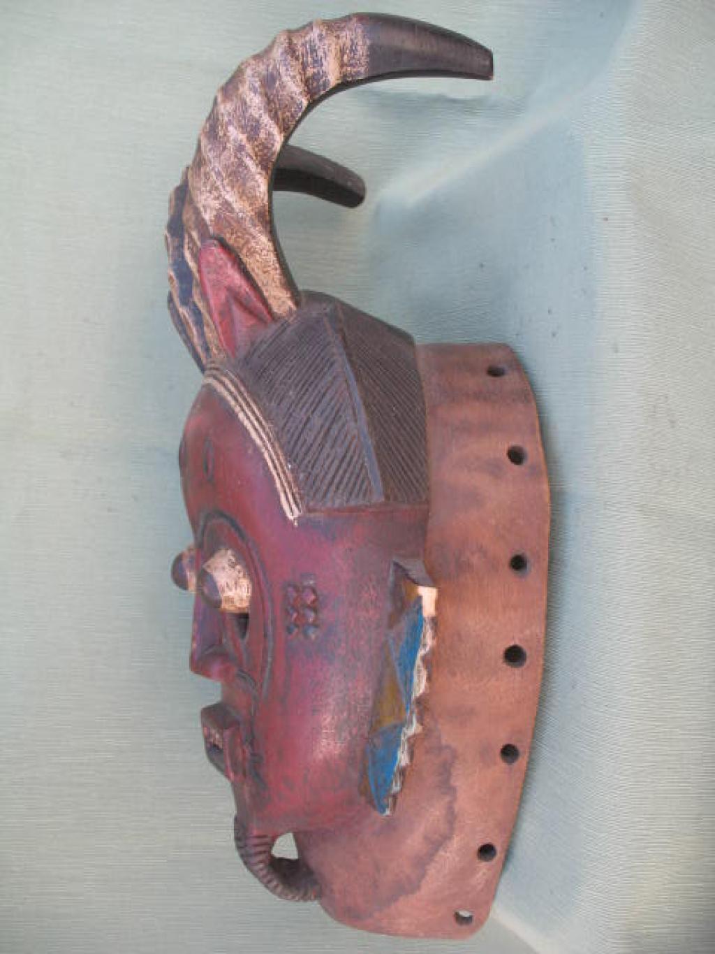 Rostro humano con cuernos de antílope. Representan un acontecimiento importante sobrevenido a un miembro del clan. En este caso de trata de la evocación de una escena de caza. Aparece en los funerales. Estas máscaras sólo podían ser vistas por los hombres. Aparece actualmente en las fiestas lúdicas.