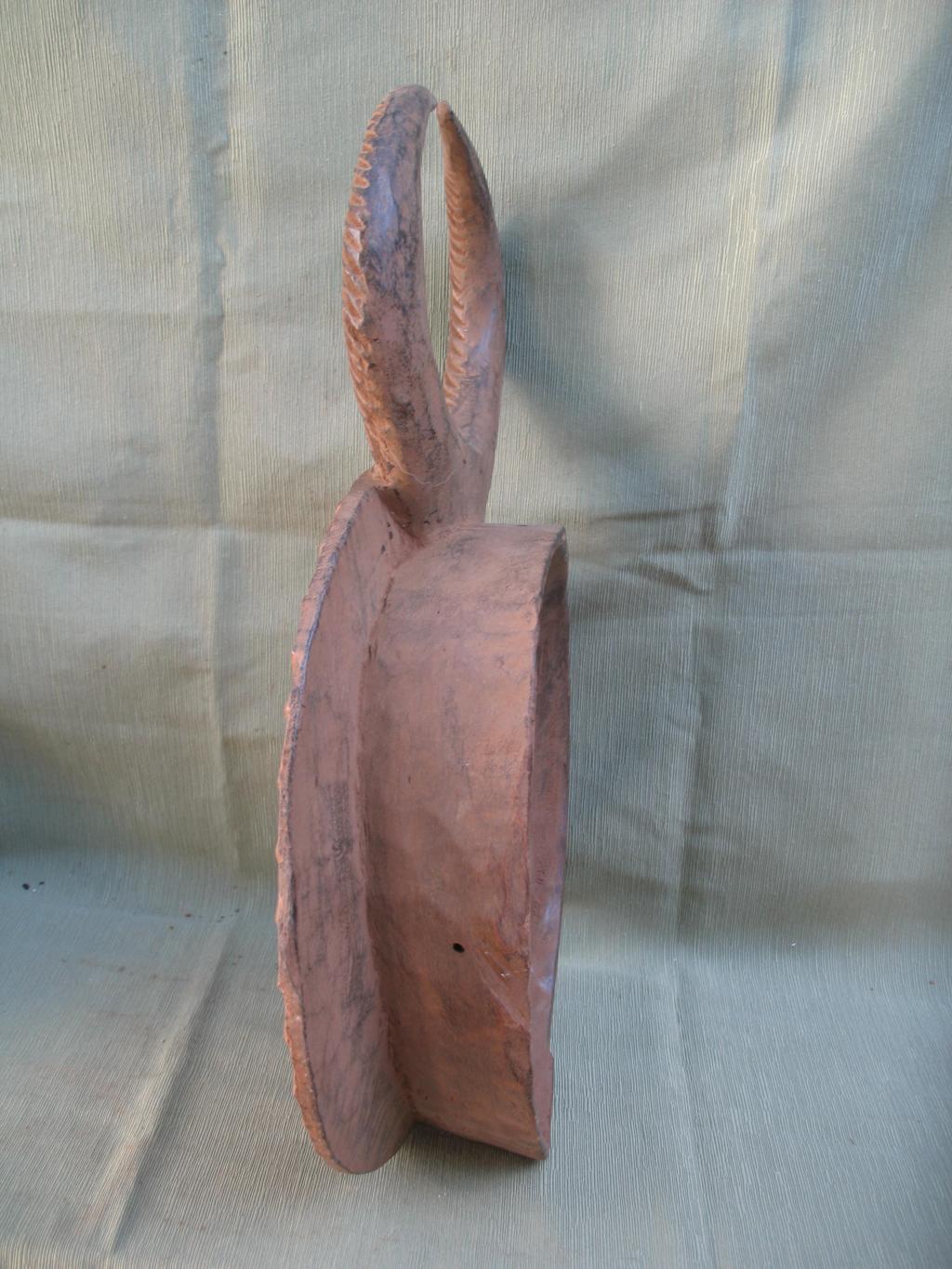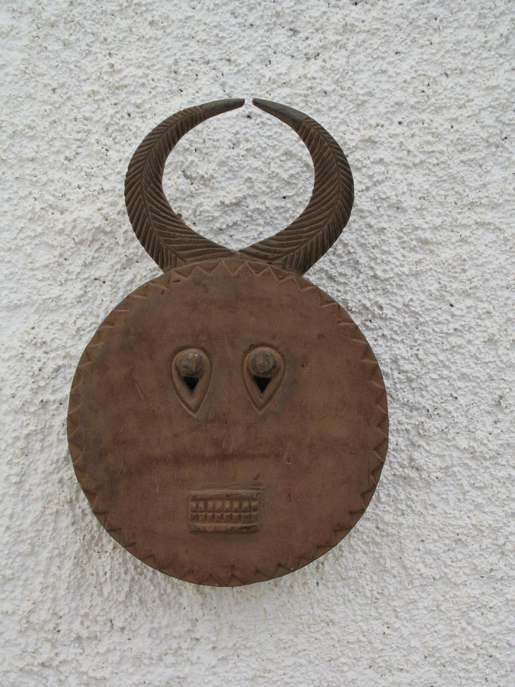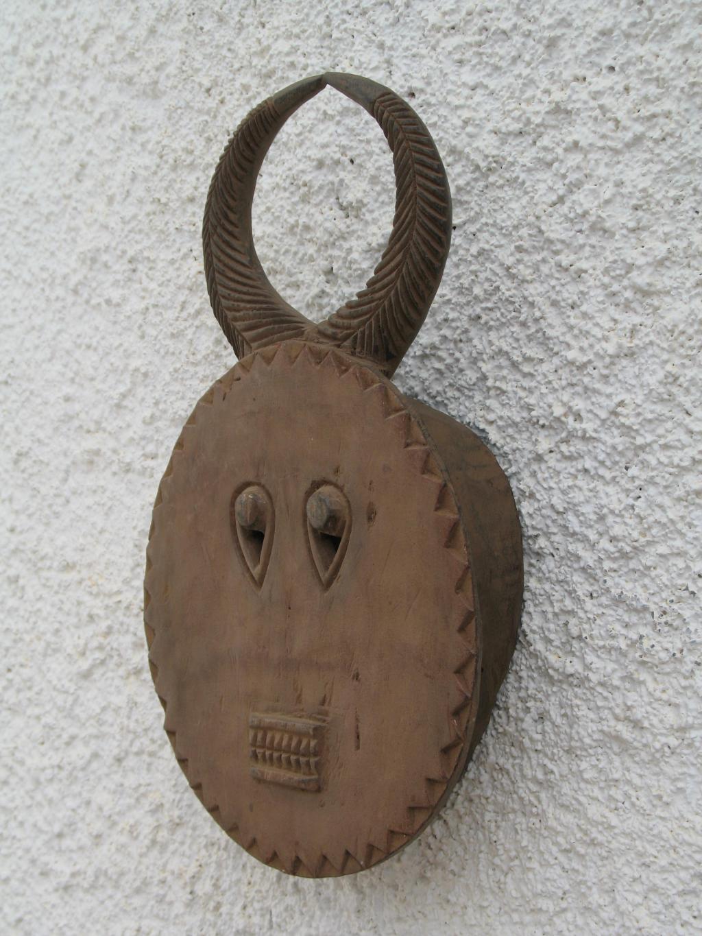 Máscara de color marrón cuyo borde está festoneado con picos triangulares.