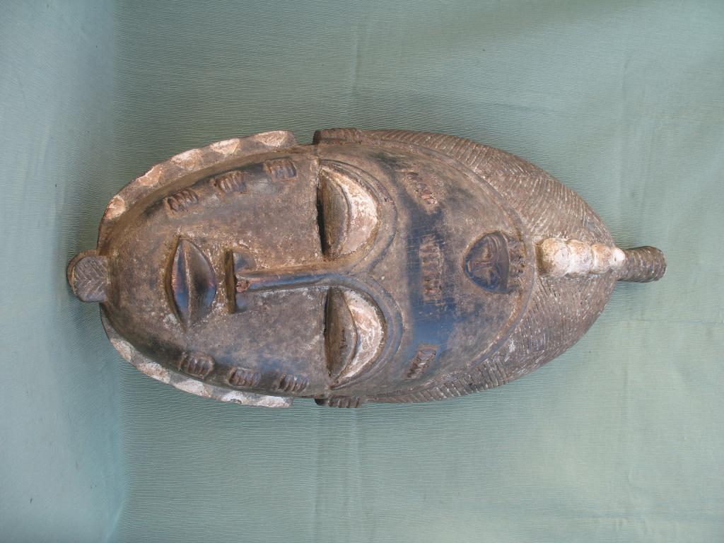 Las máscaras femeninas intervienen con motivo de la entronización de los jefes y hacen valer el rango de la mujer en una sociedad en la que el poder de los notables proviene de la mujer, de sus antepasados femeninos, evocando de manera especial a la reina Abla Pokou. Máscara de gran tamaño con numerosas escarificaciones en el rostro que indican su elevado nivel social. Expresión de dulzura y elegancia, típica de la estatuaria baulé. Sobre la frente hay una pequeña máscara. Los arcos ciliares pintados de blanco caolín, al igual que los triángulos alternos del festón que rodea el rostro y el motivo en relieve del tocado dan realce a la máscara estableciendo un vivo contraste con el color negro.