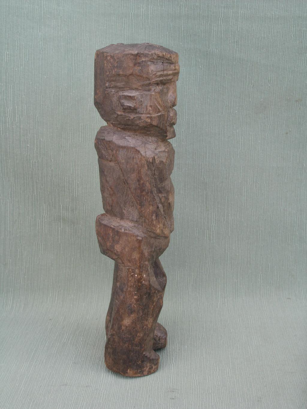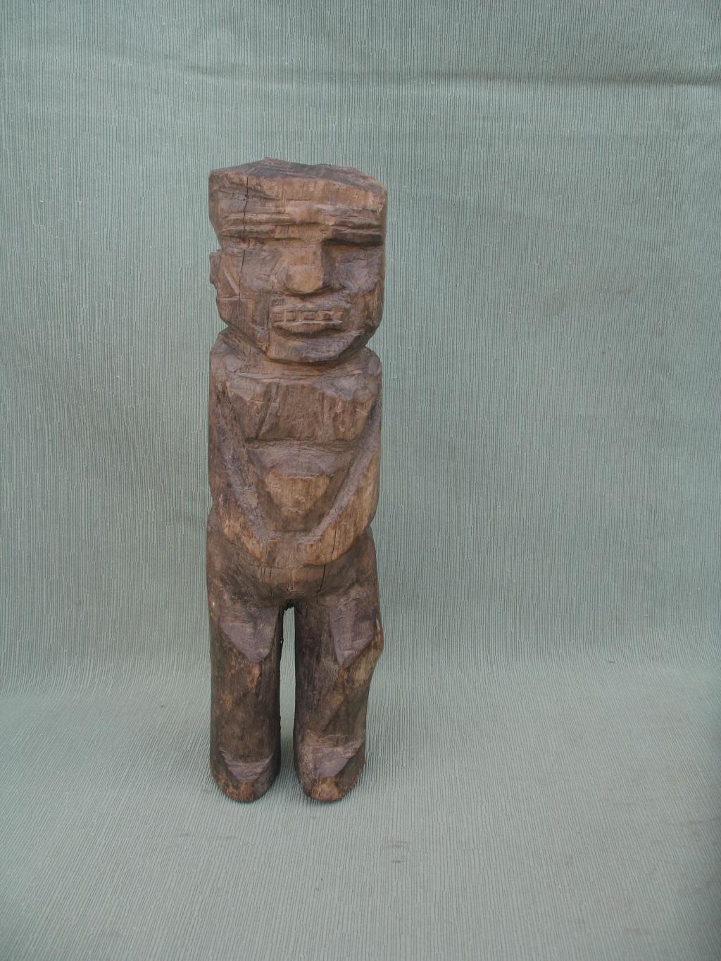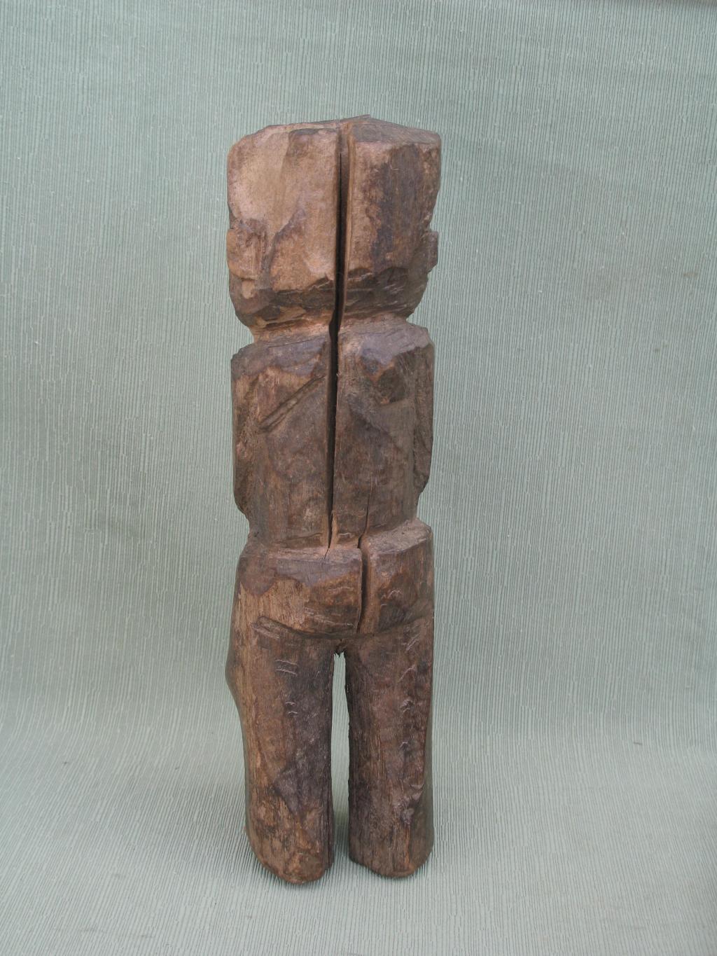 Los bateba femeninos reciben el nombre de thilburu y son estatuas que reciben culto en los altares familiares. Se trata en esta ocasión de una pequeña estatua de tosca realización, tallada probablemente, como es muy frecuente, por un miembro de la familia. Fisura de edad en la espalda. Pátina del tiempo.