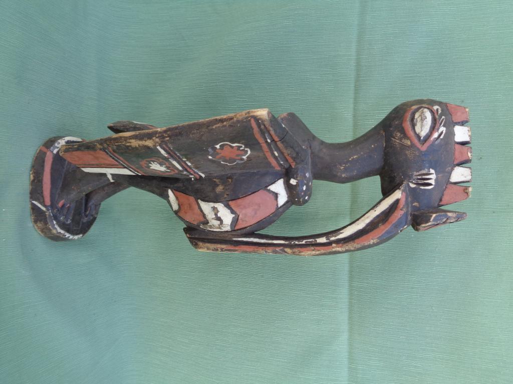 Las estatuas que representan al calao pueden ir desde pocos centímetros alcanzar hasta más de dos metros y tener las más diversas formas. Con frecuencia aparecen como remate en la parte superior de las máscaras Kpelié.