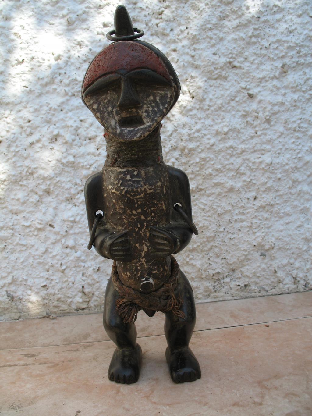 Estos fetiches están hechos tomando como modelo los relicarios de la etnia a los que copian en sus grandes líneas. En la oquedad de la espalda en lugar de contener las reliquias de los antepasados se introducen amuletos protectores. Pátina oscura.