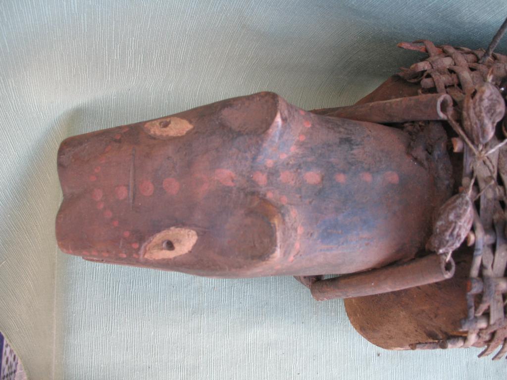 Materiales / Técnica : Madera, clavos, cestería, calabazas, frutos silvestres secos, cadena.