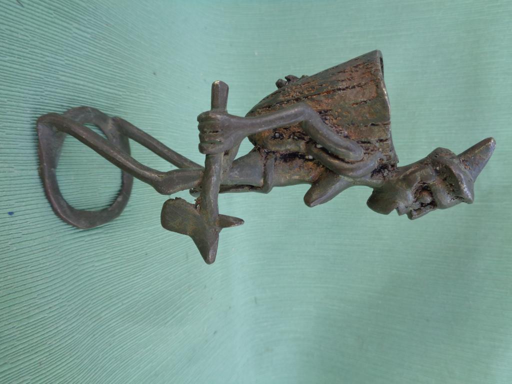 Pequeña figura que representa a una labradora con la azada en la mano y el cesto en la espalda. En la mayoría de las enias africanas es la mujer quien se ocupa de labrar los campos.